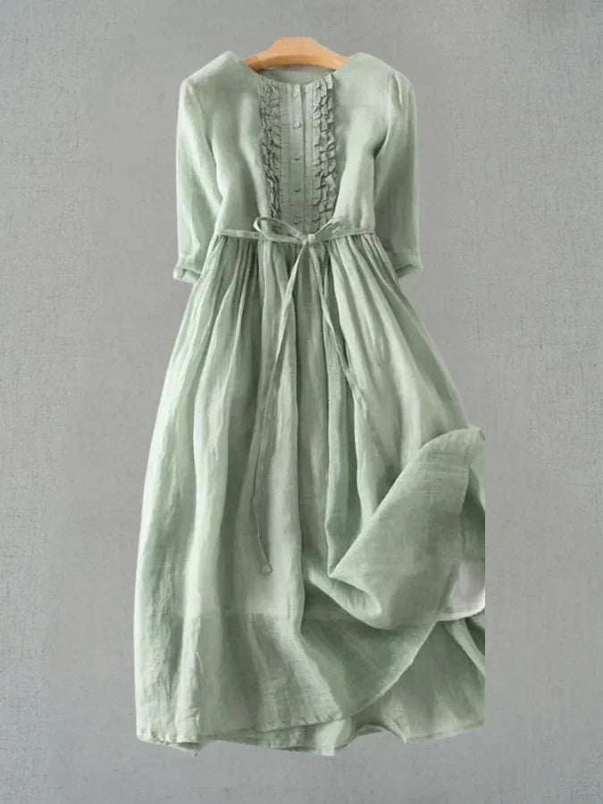 Komfort Hele Dagen: Lavet af en åndbar blanding af bomuld og hør, holder denne kjole dig kølig og komfortabel, uanset sæson.
