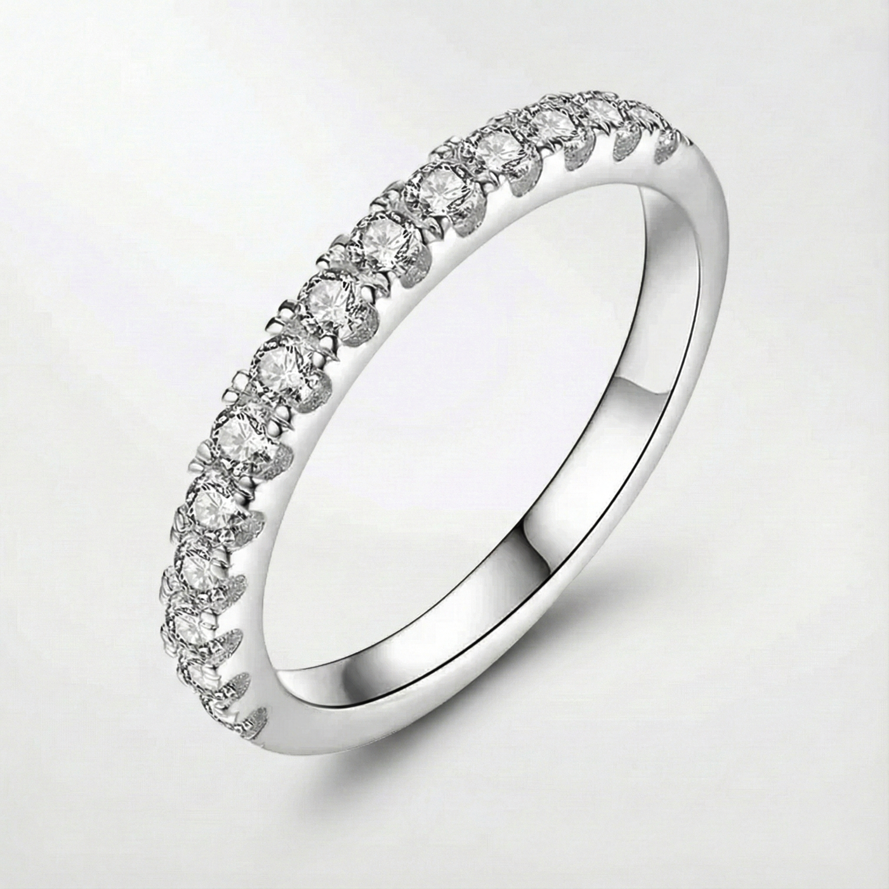 La fede nuziale in moissanite unisce la lucentezza fredda al fuoco abbagliante delle pietre di moissanite. Classica e raffinata, è un simbolo d'amore, progettata per brillare per tutta la vita.
