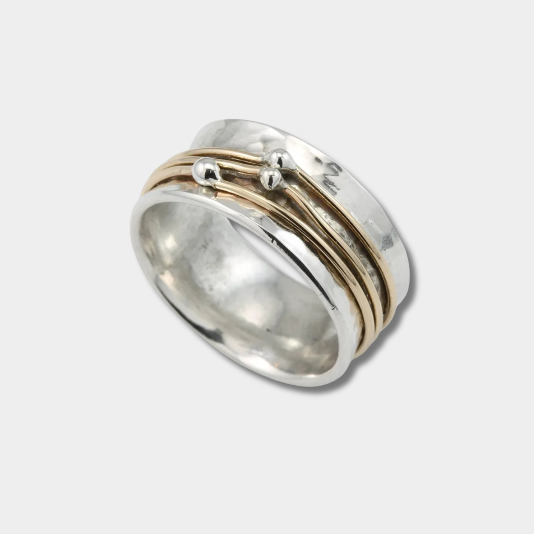Marlene– Anello largo finemente battuto con accenti dorati